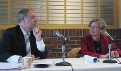 Zimmermann speaks in Boston, Bratislava and Budapest On the invitation of the Center for German and European Studies at Brandeis University and co-sponsored by the Rosenberg Institute of Global Finance and the International Studies Program, IZA Director Klaus F. Zimmermann visited Brandeis University (Boston, USA) on October 20, 2010. He discussed the topic "German Austerity vs. US Stimulus" in a public debate with Catherine L. Mann, Rosenberg Professor of Global Finance, Director of the Rosenberg Institute and Senior Fellow at the Peterson Institute for International Economics in Washington, DC (see picture on the right).