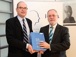 IZA Director and Britain’s minister for work and pensions discuss about welfare migration During a meeting with the UK Secretary of State for Work and Pensions, Iain Duncan Smith, IZA Director Klaus F. Zimmermann emphasized the importance of free labor mobility within the European Union. According to Zimmermann a European labor market without borders is also a prerequisite for a functioning single market economy and the stability of the Euro. Without it, growth prospects are hampered – as is any hope for a Europe which manages to balance the laws of supply and demand.